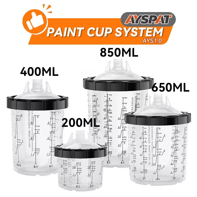 กำลังมองหาโซลูชันที่สะอาดกว่า เร็วกว่า และมีประสิทธิภาพมากกว่าสำหรับทุกความต้องการในการฉีดพ่นของคุณหรือไม่? ระบบถ้วยพ่นสีแบบใช้แล้วทิ้งขนาด 600 มล. 1.0 คือโซลูชั่นที่เหมาะสมที่สุด AYSPAT เสนอให้คุณแล้วถ้วยสเปรย์แบบใช้แล้วทิ้งที่รวมการผสมสี การกรอง การพ่น และการจัดเก็บไว้ในระบบเดียว ทำให้ชีวิตการทำความสะอาด การผสม และการพ่นสีง่ายขึ้นด้วยแรงโน้มถ่วงของเรา ปืนสเปรย์