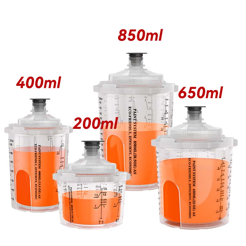 - AYS3.1ถ้วยสเปรย์แบบใช้แล้วทิ้งทำจากวัสดุ PP และ PE ที่ทนต่อตัวทำละลายและทนต่อแรงกระแทก รองรับการเคลือบที่หลากหลายรวมถึงสียางสีน้ำมันและเคลือบเงาช่วยขจัดปัญหาการกัดกร่อนที่เกี่ยวข้องกับถ้วยสเปรย์แบบดั้งเดิมได้อย่างมีประสิทธิภาพ